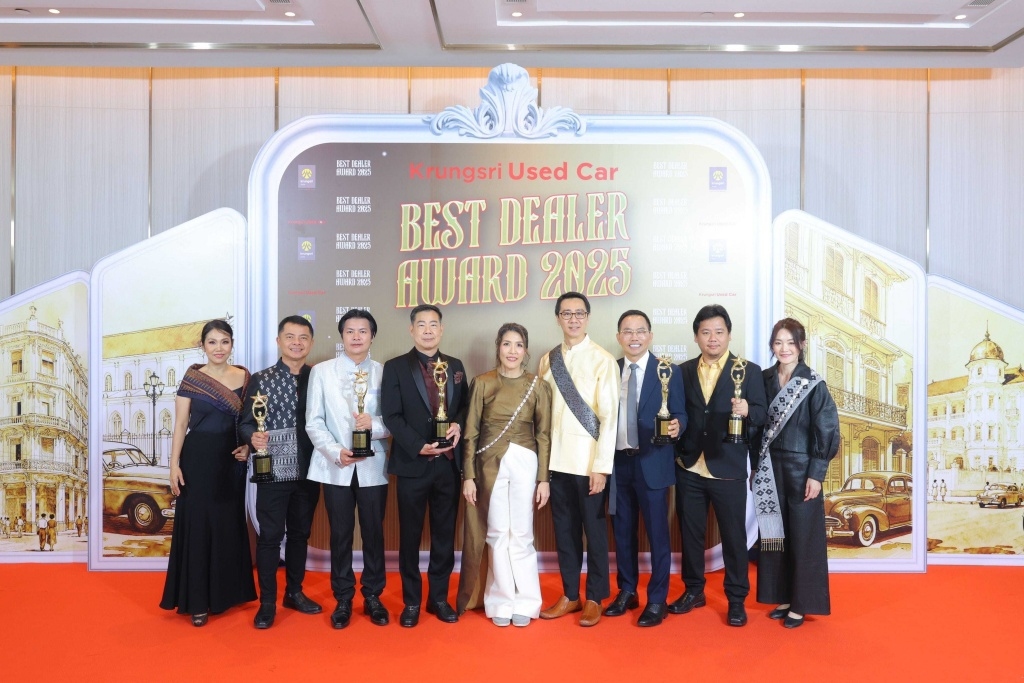 กรุงศรี ออโต้ ผู้นำธุรกิจสินเชื่อยานยนต์ครบวงจร เครือธนาคารกรุงศรีอยุธยา จำกัด (มหาชน) นำโดย ชญาน์ธิป พันธุ์มณี (กลาง) ประธานคณะเจ้าหน้าที่ด้านธุรกิจสินเชื่อยานยนต์ ธนาคารกรุงศรีอยุธยา จำกัด (มหาชน) มอบรางวัล Krungsri Used Car Best Dealer Awards 2025 เพื่อตอกย้ำความสำเร็จของพันธมิตรผู้ประกอบการรถยนต์ใช้แล้วทั่วประเทศ ที่มีผลงานโดดเด่น และดำเนินธุรกิจอย่างมีมาตรฐานสูงสุด ประจำปี 2568 รวม 5 ประเภทรางวัล โดยมีผู้ได้รับรางวัลทั้งสิ้น 37 รางวัล จากพันธมิตร “กรุงศรี ยูสด์ คาร์” กว่า 3,000 รายทั่วประเทศ พิธีมอบรางวัลจัดขึ้น ณ ห้อง Prestige Hall โรงแรม Grand Centre Point Prestige Bangkok