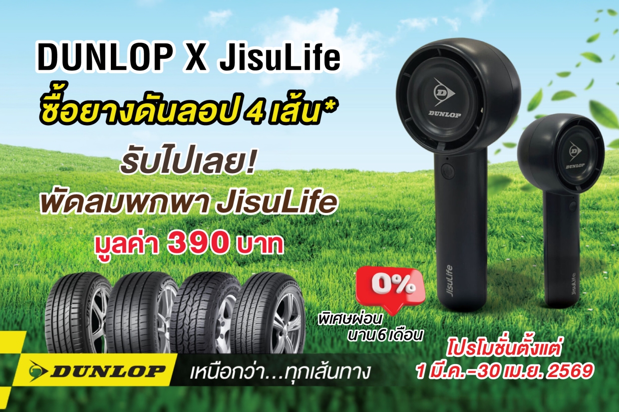 ซื้อยาง Dunlop ครบ 4 เส้น รับฟรี! พัดลมพกพา Dunlop x JisuLife ดีไซน์พิเศษ (มูลค่า 390 บาท)