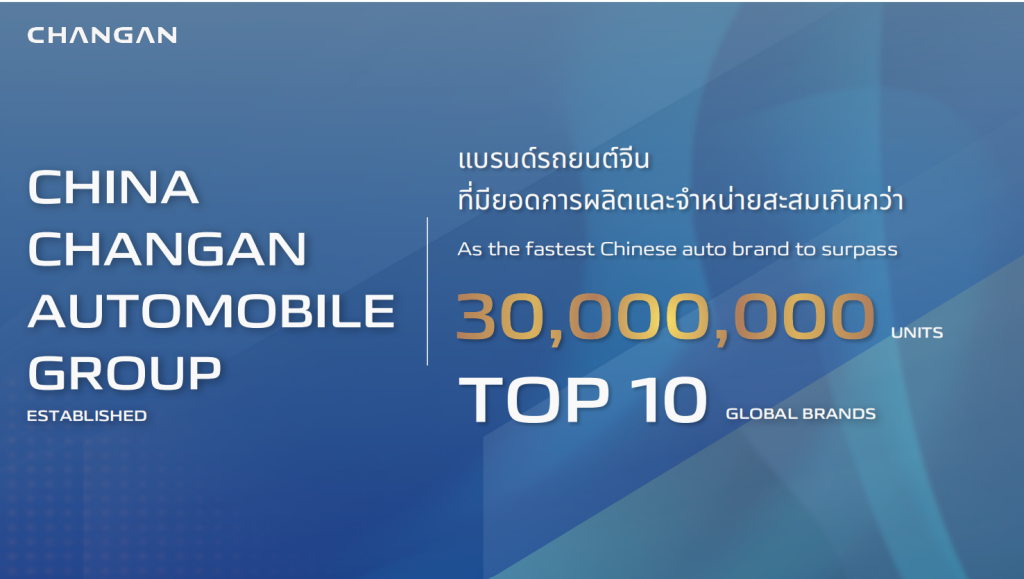 ยิ่งไปกว่านั้น Changan Automobile ประเทศจีน ยังได้ประกาศ Milestone ใหม่ ฉลองการผลิตรถยนต์ทะลุ 30 ล้านคัน ทำให้ Changan ก้าวขึ้นสู่ Top 10 ผู้ผลิตรถยนต์ของโลกในฐานะแบรนด์รถยนต์จีนที่สามารถสร้างสถิติยอดการผลิต และยอดขายสะสมมากกว่า 30 ล้านคันได้เร็วที่สุด”