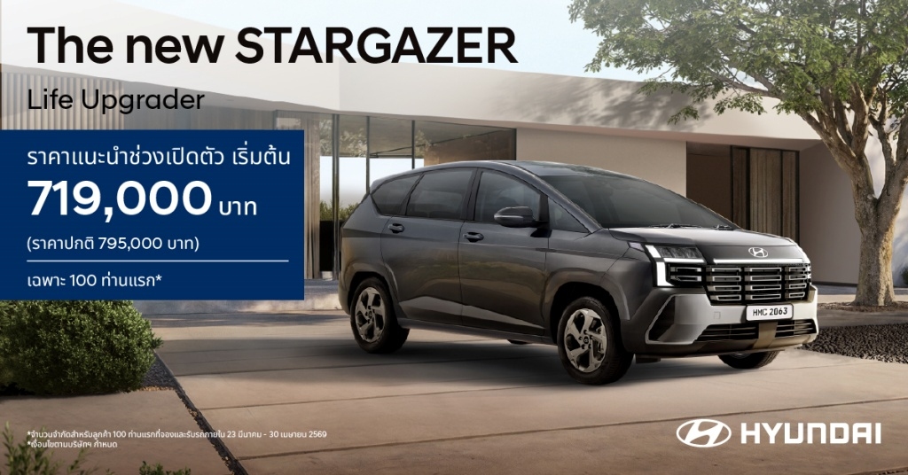 ขณะเดียวกัน ยังเปิดตัว Hyundai new Stargazer รถ 6 ที่นั่ง 3 แถว รุ่นปรับโฉมใหม่ รถอเนกประสงค์ที่ออพชันความปลอดภัยครบสุดในคลาสส์ด้วย Hyundai SmartSense มากถึง 13 ระบบ พัฒนาภายใต้แนวคิด “Life Upgrader” อัพชีวิตให้เหนือกว่า เพื่อตอบโจทย์ไลฟ์สไตล์ของผู้ใช้งานยุคใหม่ ทั้งครอบครัวรุ่นใหม่ สตาร์ตอัพยุคใหม่ และผู้ที่ต้องการรถยนต์ที่รองรับการใช้งานได้หลากหลายในคันเดียว