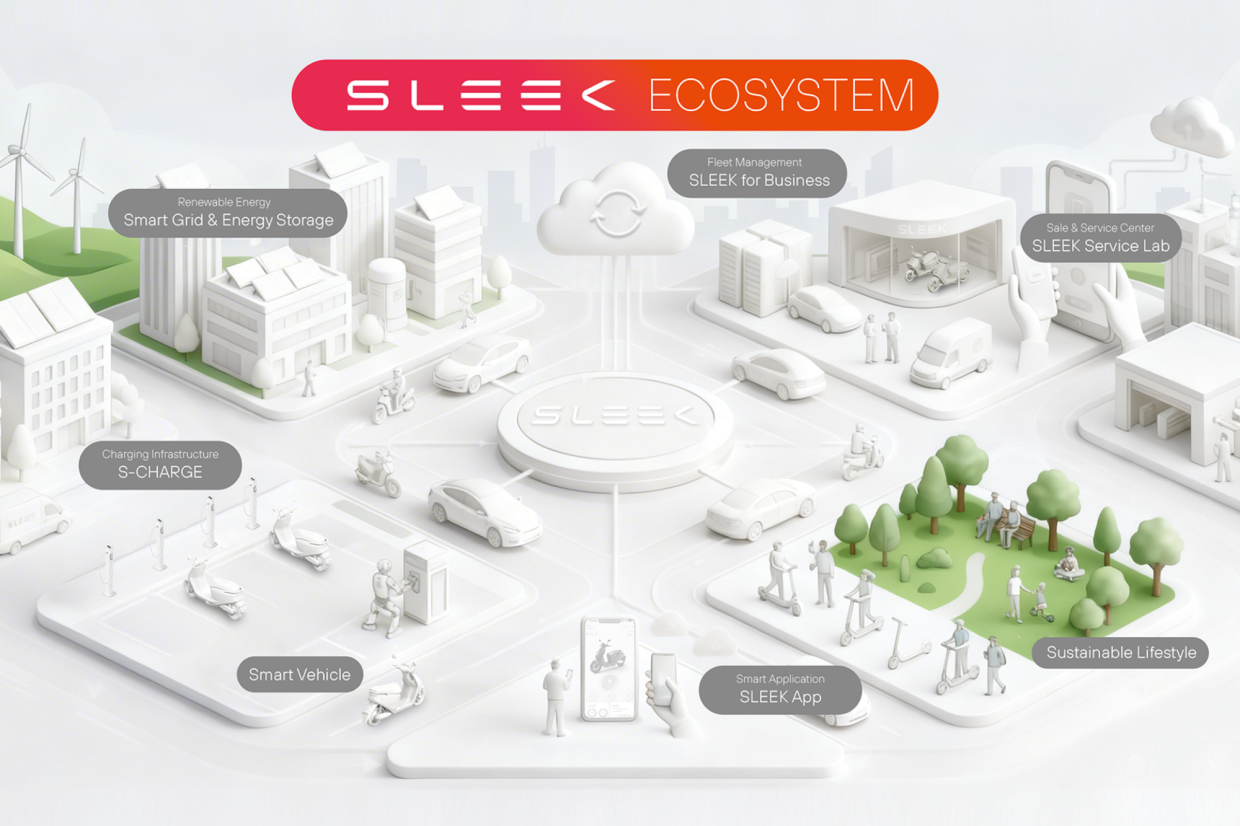 ทั้งนี้ Sleek EV ตระหนักดีว่าการตัดสินใจเปลี่ยนมาใช้มอเตอร์ไซค์ไฟฟ้าไม่ใช่แค่เรื่องราคา แต่คือความมั่นใจในระยะยาว บริษัทจึงพัฒนา และขยาย Ecosystem ที่ออกแบบมาเพื่อตอบโจทย์ทุกความกังวล ด้วยเครือข่ายศูนย์บริการที่มีกระจายอยู่ครอบคลุมทั้ง 22 จังหวัด พร้อมทีมช่างที่ผ่านการอบรมมาตรฐานจาก Sleek EV โดยตรง รองรับทั้งการซ่อมบำรุงทั่วไป และการอัพเดทซอฟท์แวร์ระบบของรถ รวมไปถึงการเร่งสร้าง Ecosystem ที่ครอบคลุมทุกมิติของการเดินทางด้วยพลังงานสะอาด ตั้งแต่ผลิตภัณฑ์ที่ออกแบบเพื่อเมืองไทยโดยเฉพาะ เครือข่าย S-Charge ไปจนถึงแอพพลิเคชันที่เชื่อมต่อกับรถแบบเรียลไทม์ พร้อมขยายจุดชาร์จอย่างต่อเนื่องทั่วกรุงเทพฯ และหัวเมืองหลัก โดยมีเป้าหมายให้การชาร์จไฟเป็นเรื่องปกติในทุกที่ที่ผู้ใช้จอดรถ ไม่จำเป็นต้องวางแผนการชาร์จล่วงหน้า