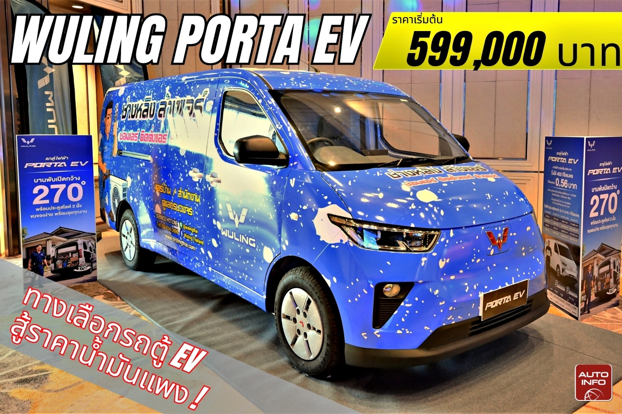 - ราคาเปิดตัวสำหรับ Wuling Porta EV เริ่มต้นเพียง 599,000 บาท และ 629,000 บาท สำหรับรุ่น Premium ถือเป็นรถยนต์เชิงพาณิชย์พลังไฟฟ้ารุ่นเดียวที่มีราคาจำหน่ายเดียวกับรถพิคอัพหัวเดี่ยวพลังงานดีเซล