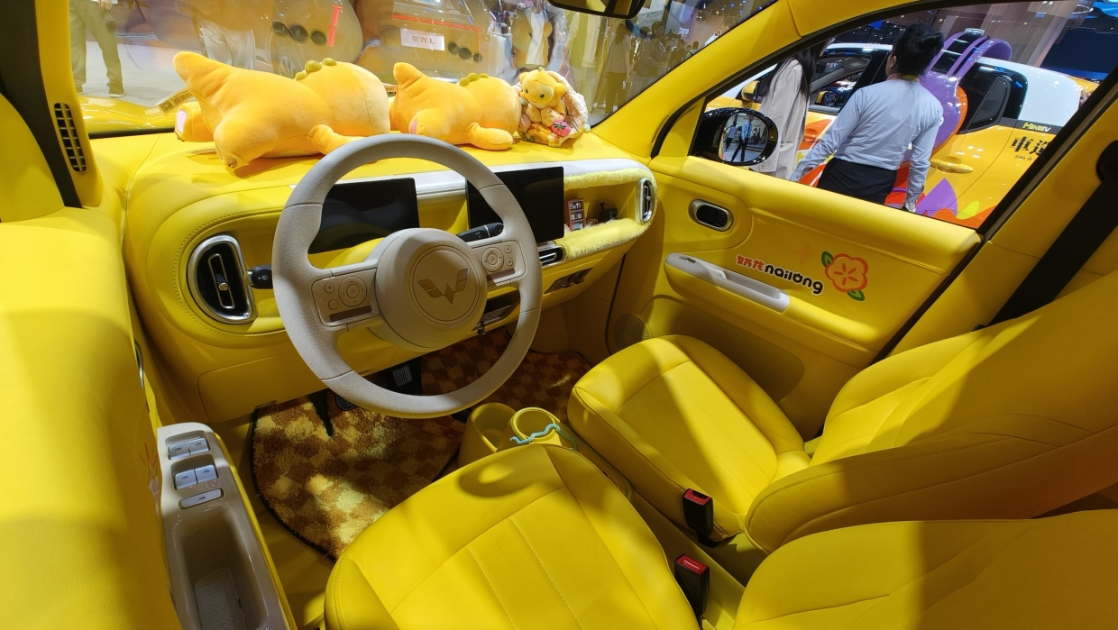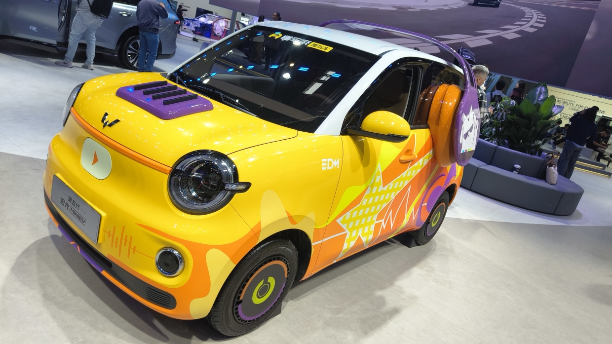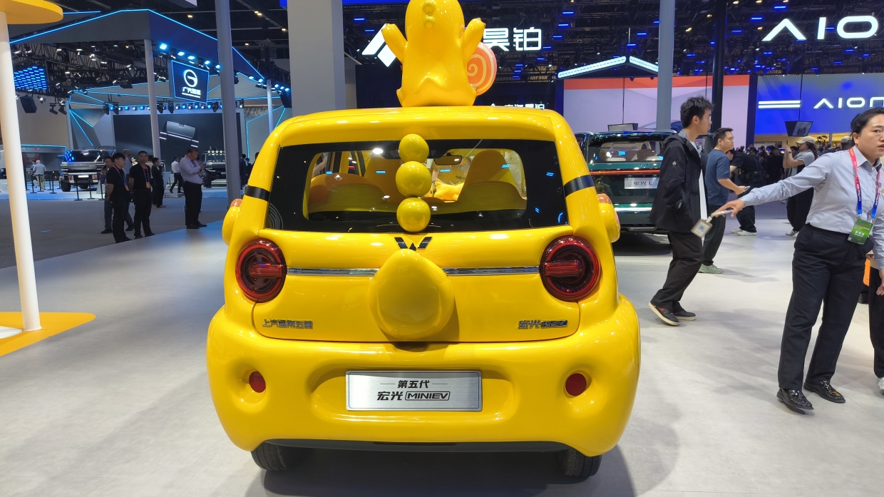 เราเริ่มคันแรกที่ “ของถนัด” ของค่ายรถแห่งนี้ นั่นคือ รถยนต์ไฟฟ้าขนาดเล็ก ได้รับความนิยมไม่น้อยในประเทศจีนกับ Wuling Mini EV (วูหลิง มีนี อีวี) รุ่นล่าสุด ในบูธจะโดดเด่นด้วยแฮทช์แบคพลังไฟฟ้าสีเหลือง ตกแต่งด้วยลายการ์ตูนรอบคัน (แทบจะลืมเส้นสายของคันจริงไปเลย) บ่งบอกการเป็นรถยนต์ไฟฟ้าขนาดเล็ก แต่มีประโยชน์ใช้สอยครบครัยอย่างเหมาะสม โอกาสทำตลาดในประเทศไทยยังไม่มีวี่แวว เพราะตัวรถมีขนาดเล็กมาก