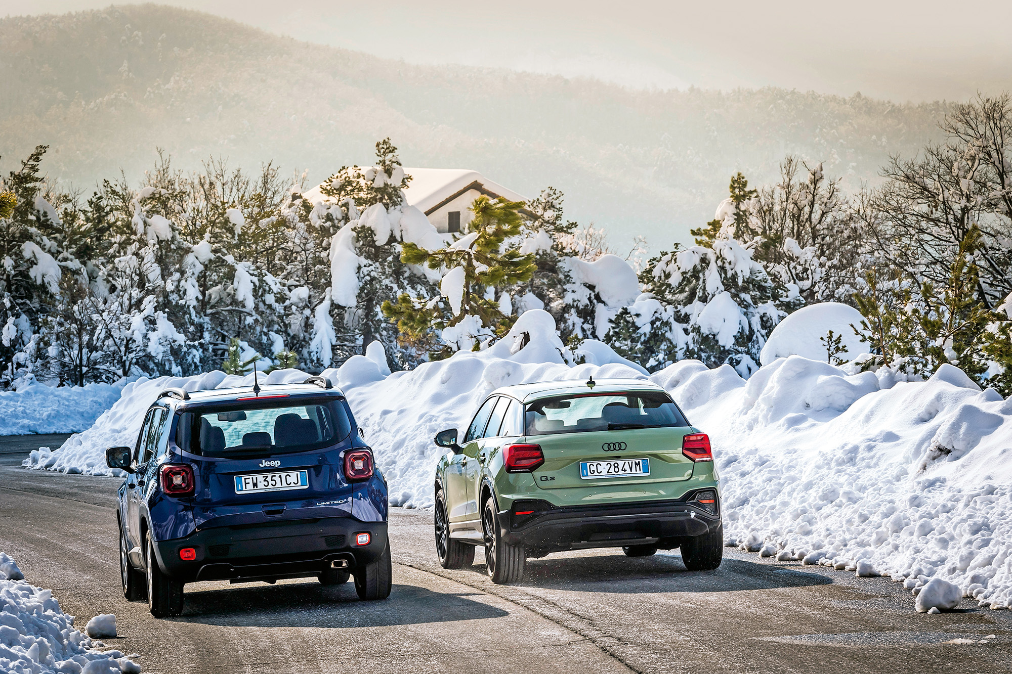 จุดสำคัญของรถยนต์ทั้ง 2 คัน นอกเหนือจากที่ทีมงานพบระหว่างทดสอบ คือ เอสยูวีที่มีความสปอร์ทในตัวเช่นกัน กับมิติตัวถังที่ใกล้เคียงกัน พร้อมกับคุณสมบัติที่คู่ควรแก่การนำมาเปรียบเทียบกันมากๆ ไม่ว่าจะเป็นขุมพลัง (เบนซิน เทอร์โบ 4 สูบเรียง 150 แรงม้า ทั้ง 2 คัน) การขับเคลื่อน 2 ล้อหน้า และระบบส่งกำลังแบบคลัทช์คู่ โดยทาง JEEP เป็นแบบ 6 จังหวะ ส่วน AUDI คือ 7 จังหวะ เท่านั้นยังไม่พอ ทั้ง Q2 และ RENEGADE เป็นรถยนต์ที่ไม่มีระบบมอเตอร์ไฟฟ้ามาเกี่ยวข้อง ติดตั้งเพียงระบบสตาร์ท/ดับเครื่องยนต์อัตโนมัติเท่านั้น