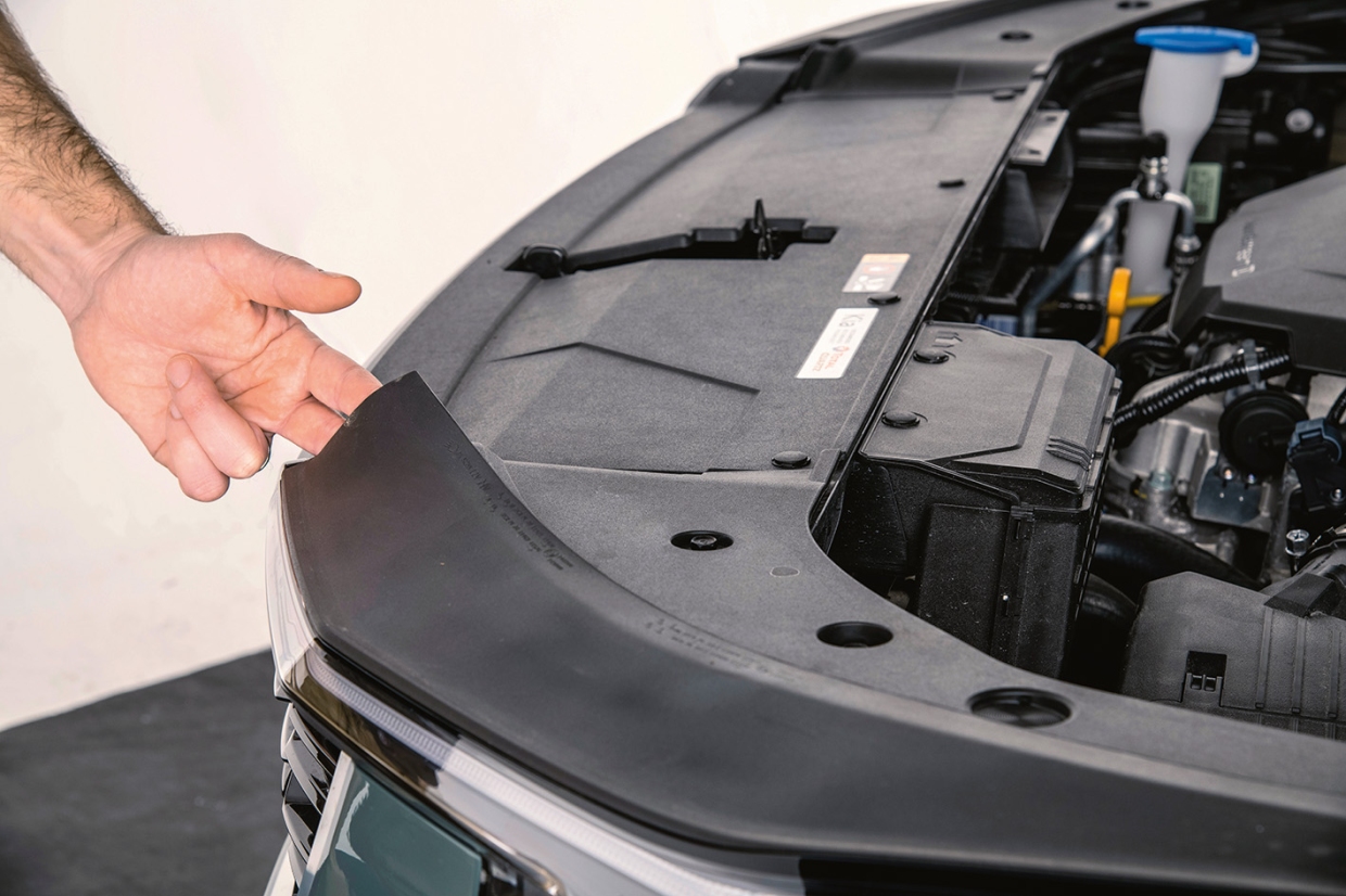 A. ส่วนขอบของห้องเครื่องยนต์ติดตั้งวัสดุยางที่แน่นหนา ลดเสียงรบกวนของลมปะทะขณะใช้ความเร็วสูง