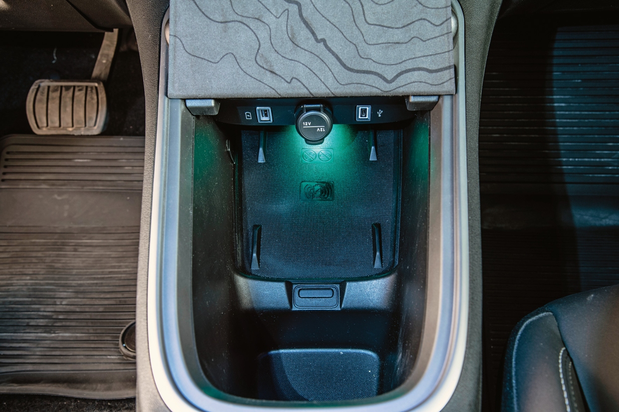 10. คอนโซลกลางพร้อมแท่นชาร์จมือถือไร้สาย และช่อง USB-C จำนวน 2 ช่อง รวมถึงช่องจ่ายไฟฟ้าแบบ 12 โวลท์