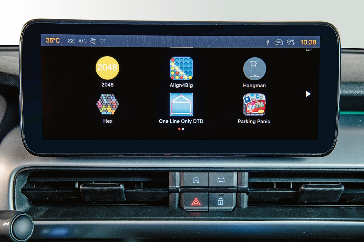 พื้นที่เก็บสัมภาระที่มีความจุค่อนข้างจำกัด กลับลดลงไปอีกประมาณ 20 ลิตร จากการติดตั้งระบบรองรับด้านหลังแบบมัลทิลิงค์ และมอเตอร์ไฟฟ้า ขณะที่จอแสดงผลหลักสำหรับระบบความบันเทิงกลับไม่มีหน้าจอแสดงผลสำหรับการลุยทางสมบุกสมบัน ซึ่งเป็นจุดที่น่าเสียดายไม่น้อย
