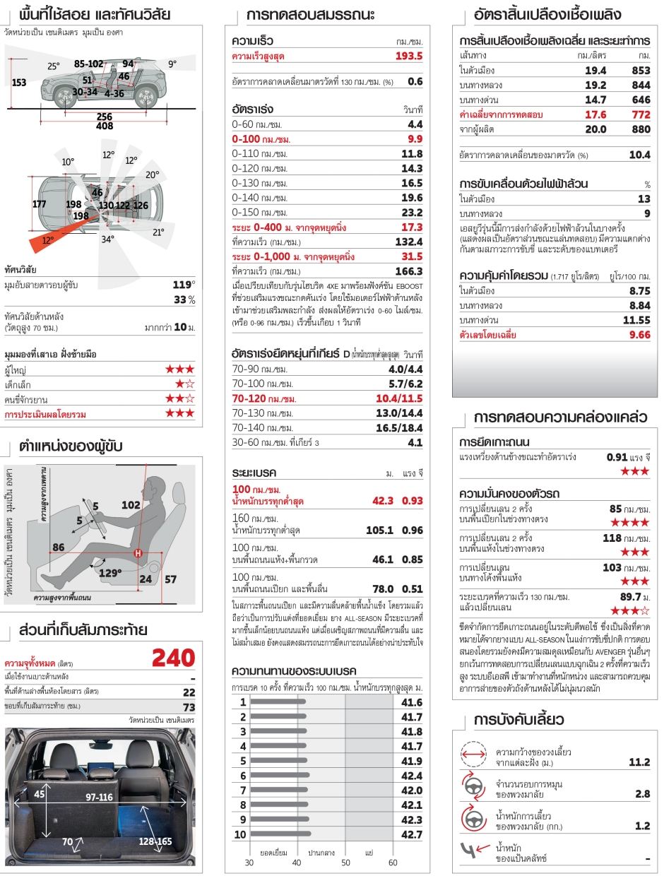 ข้อมูลจำเพาะ ข้อมูลของรถทดสอบจากผู้ผลิต