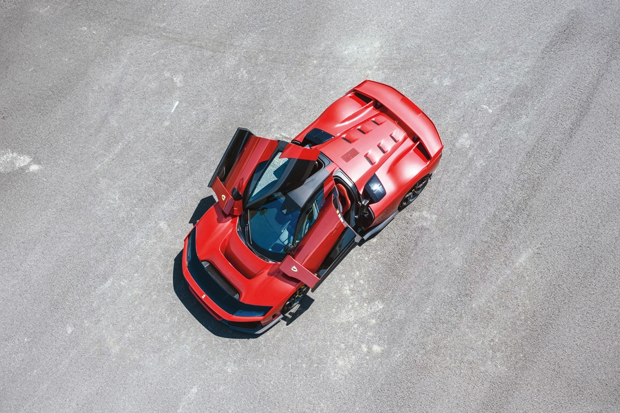 เราเริ่มกับที่มาของรายละเอียดจาก F80 นั่นคือ การเป็นทายาทของสายเลือดชั้นสูงที่ถือกำเนิดจากรุ่น GTO และ F40 และยังคงสืบทอดจิตวิญญาณ และเอกลักษณ์ของบรรพบุรุษไว้อย่างครบถ้วน ในเชิงเทคนิคซูเพอร์คาร์จากค่ายม้าลำพอง (ซึ่งที่เมืองมาราเนลโลใช้คำนี้เพื่อเรียกรถระดับไฮเพอร์คาร์ เพราะสำหรับพวกเขา FERRARI รุ่นอื่นถือเป็นรุ่นมาตรฐานตามปกติ) มีหน้าที่สะท้อนศักยภาพทางวิศวกรรมของยุคสมัยนั้นๆ ขณะที่ในเชิงไดนามิค รถสปอร์ทระดับทอพต้องทั้งแข็งแกร่งบนสนามแข่ง และใช้งานได้จริงบนถนนสาธารณะ