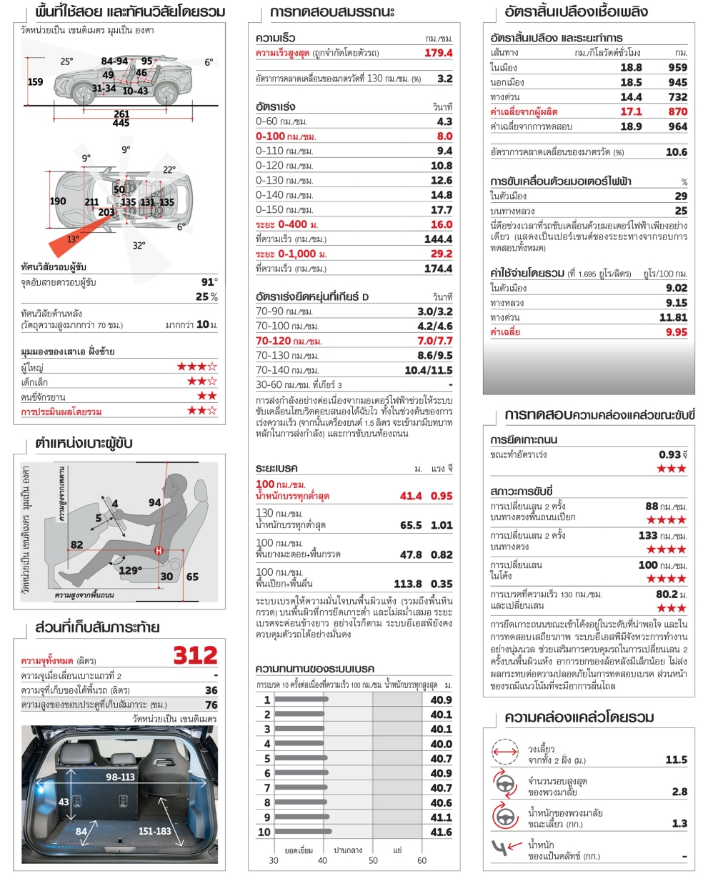 - ความคุ้มค่าโดยรวม 9.95 ยูโร/100 กม.