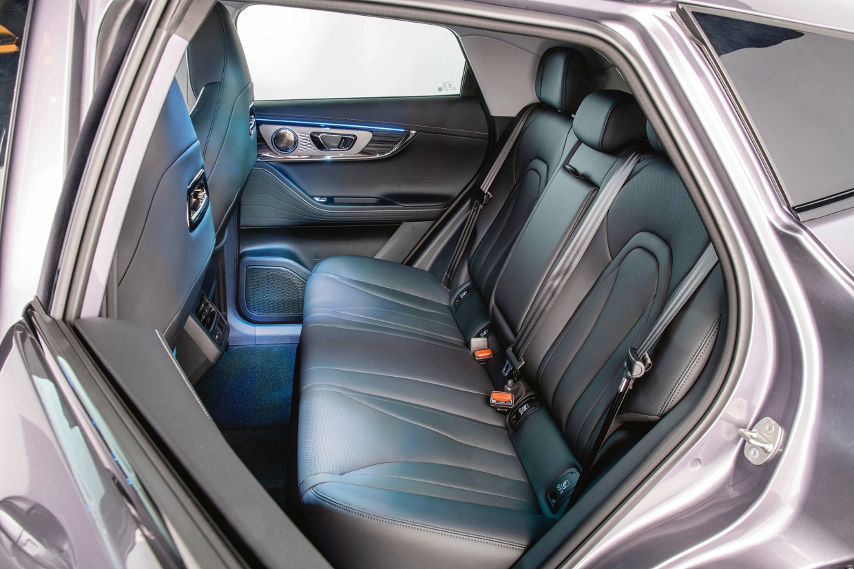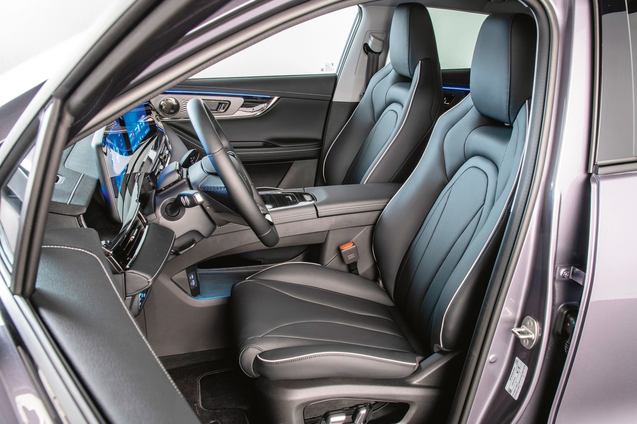 ระบบความบันเทิงไม่มีเนวิเกเตอร์ในตัว แต่ชดเชยด้วยการเชื่อมต่อโทรศัพท์มือถือไร้สายที่เสถียร และแท่นชาร์จไร้สายกำลังสูง 50 วัตต์ หน้าจอขนาด 12.2 นิ้ว แสดงภาพจากกล้อง 360 องศาที่มีความคมชัด พร้อมมุมมอง 3D ที่ปรับได้ เหมาะกับการขับบนทางลูกรังเบาๆ หรือการกะระยะล้ออย่างแม่นยำ