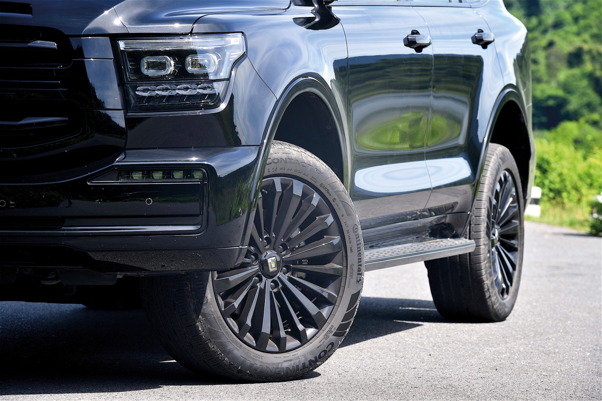 มิติตัวถังขนาดใหญ่ ยาว/กว้าง/สูง 4,886/1,934/1,905 มม. และระยะฐานล้อ 2,850 มม. โดยในรุ่น 2.4T PRO มาพร้อมล้อสีดำขนาด 18 นิ้ว จับคู่กับยาง WESTLAKE (เวสต์เลค) ขนาด 265/60 R18 ขณะที่รุ่น 2.4T ULTRA และ 2.4T ULTRA 4WD ยกระดับขึ้นอีกขั้นด้วยล้อสีดำขนาด 20 นิ้ว พร้อมยาง CONTINENTAL (คอนทิเนนทัล) ขนาด 265/50 R20