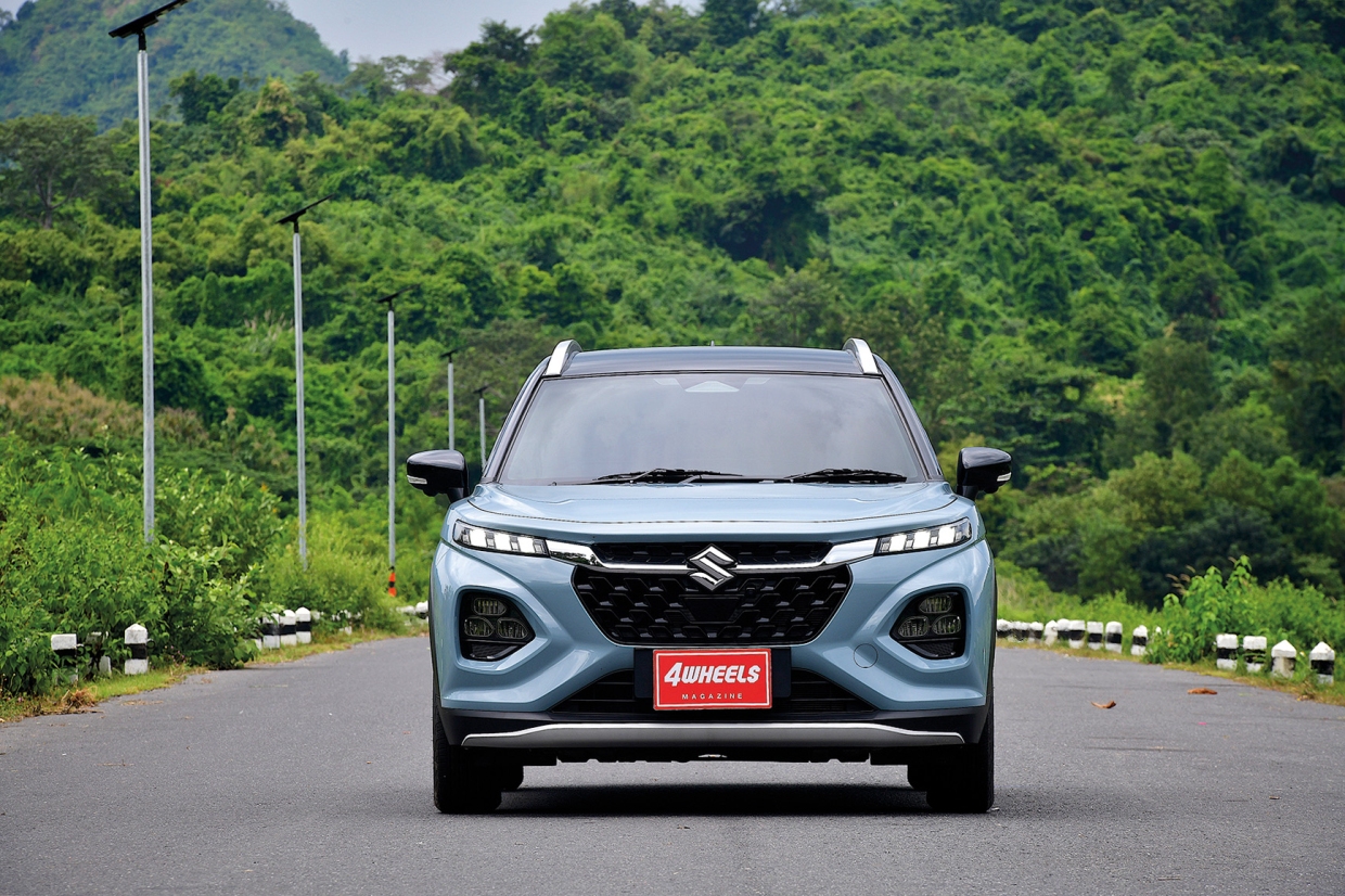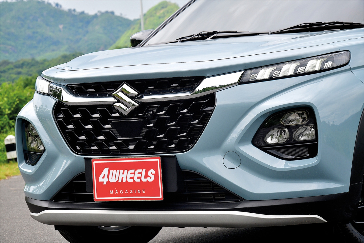 SUZUKI FRONX ภายนอกมาพร้อมกับดีไซจ์นที่โดดเด่น ด้วยกระจังหน้าทรงหกเหลี่ยมขนาดใหญ่ ไฟหน้าแบบ LED พร้อม DAYTIME RUNNING LIGHT แยกส่วน