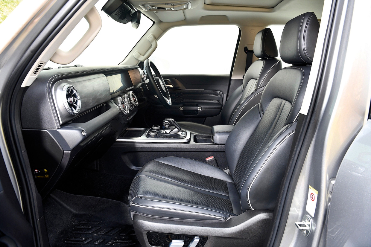 การเป็นเอสยูวีทรงสูงช่วยให้ทัศนวิสัยของผู้ขับมีความปลอดโปร่ง แม้ส่วนของเสาเอจะมีองศาที่ค่อนข้างตั้งชัน (แต่ต้านลมเล็กน้อย เมื่อแล่นที่ความเร็วสูง) แต่การมองเห็นด้านหน้า และด้านข้าง ยังคงมีทัศนวิสัยที่ดี นอกจากนี้ การเป็นเอสยูวีทรงเหลี่ยม ทำให้มีระยะเหนือศีรษะที่เหลือเฟือ ให้ความรู้สึกที่ปลอดโปร่ง และยังมีออพชันอย่างหลังคาซันรูฟ (สำหรับผู้โดยสารด้านหน้า) มาให้อีกด้วย ตัวเบาะค่อนข้างหนา นั่งได้สบาย กระชับสรีระมากเกินไป ขณะที่เบาะด้านหลังมีความกว้างขวางที่มากพอเช่นกัน ระยะช่วงขามีค่อนข้างมาก (แต่อาจไม่มากเท่าเอสยูวีสไตล์พีพีวี) เบาะนั่งจำนวน 2 แถว 5 ตำแหน่ง เหมาะสำหรับผู้โดยสารประมาณ 3-4 คน เบาะแถวที่ 2 สามารถพับเก็บได้ โดยต้องยกส่วนรองนั่งขึ้นมาก่อนจึงจะพับพนักพิงหลักลงมาได้ ที่เก็บสัมภาระท้ายมีความจุค่อนข้างมาก ส่วนพื้นรองมีแผ่นปูมาให้อีกชั้น มีข้อดี คือ สามารถทำความสะอาดได้ง่าย หากต้องขนสัมภาระจากการลุยทางสมบุกสมบัน