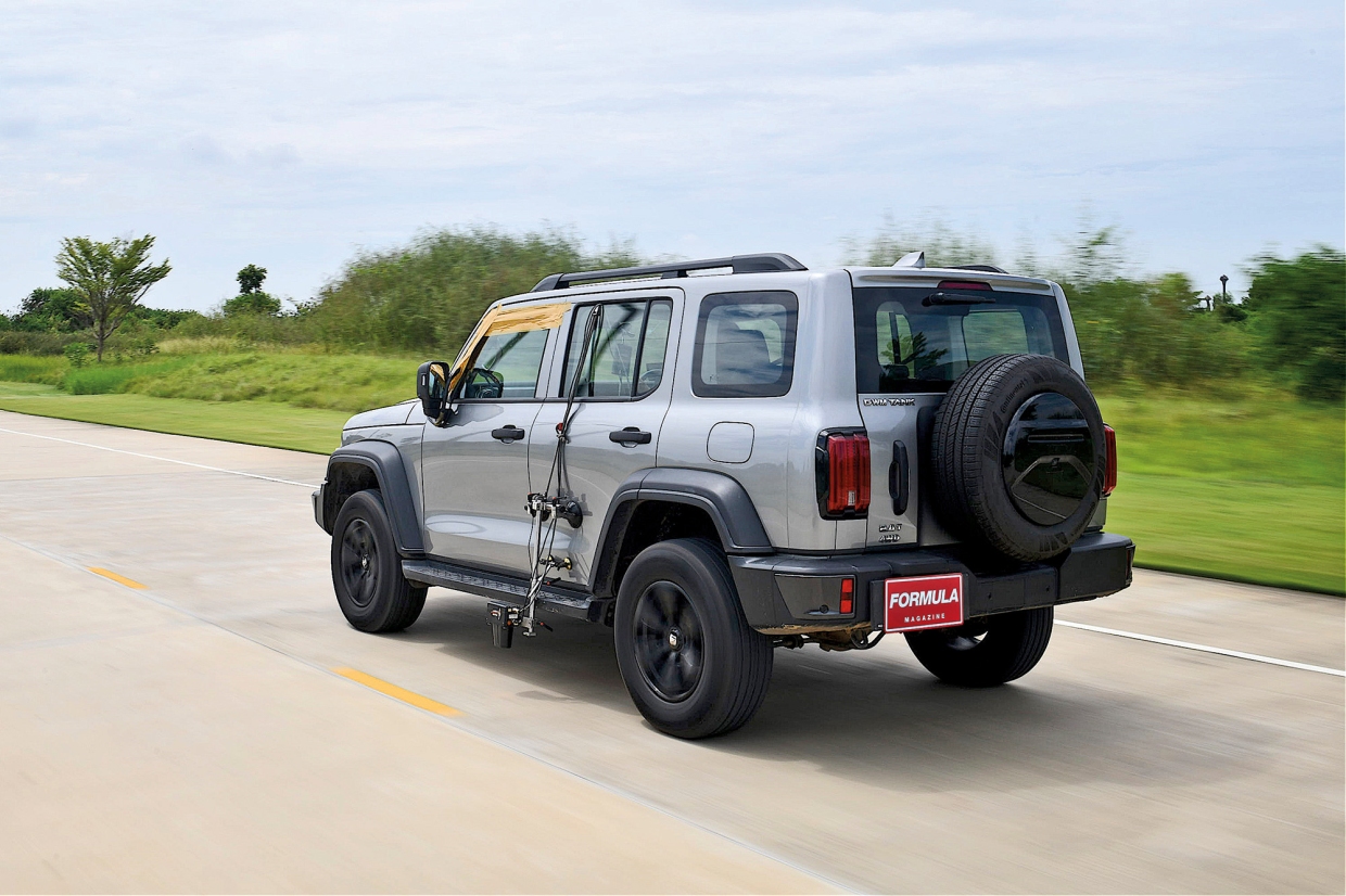 อัตราเร่งระยะ 0-1,000 ม. TANK 300 DIESEL ทำเวลาได้ใน 33.3 วินาที (ที่ความเร็ว 157.0 กม./ชม.) ส่วน MITSUBISHI PAJERO SPORT คือ 32.6 วินาที (ที่ความเร็ว 158.8 กม./ชม.) อัตราเร่งโดยรวมยังคงมีความใกล้เคียงกัน รวมถึงช่วงความเร็วปลาย TANK 300 ใช้ระบบเกียร์อัตโนมัติ 9 จังหวะ การส่งกำลังเน้นความต่อเนื่อง การเปลี่ยนจังหวะแต่ละช่วงเกียร์ไม่มีจังหวะสะดุดให้สัมผัส อัตราเร่งสามารถไต่ขึ้นมาจากแรงบิดที่ค่อนข้างสูงตามสไตล์เครื่องยนต์ดีเซล ไม่หวือหวา แต่เพียงพอกับการใช้งานทั่วไปได้สบาย