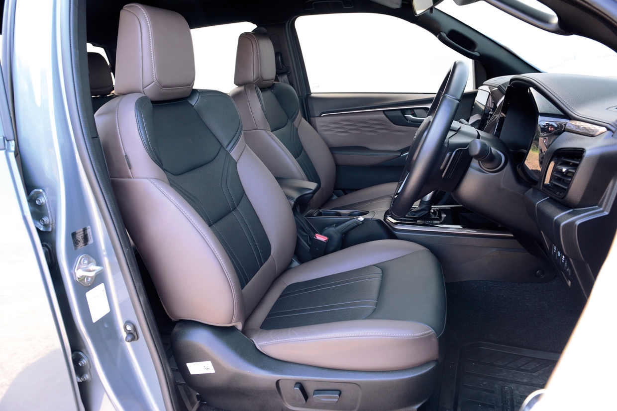 ภายในสไตล์พรีเมียม เบาะนั่งทูโทนดีไซจ์นเท่ โอบกระชับทุกสรีระ พร้อมเทคโนโลยี COOLMAX ระบบปรับไฟฟ้า 8 ทิศทางในตำแหน่งที่นั่งคนขับ