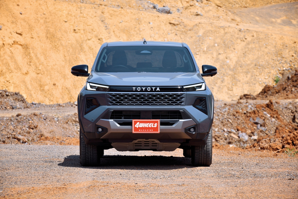 ด้านหน้าดีไซจ์นใหม่แบบ CYBER SUMO แข็งแกร่ง มั่นคง และทรงพลัง ด้านล่างคล้ายกับ COROLLA CROSS (โคโรลลา ครอสส์) ไฟหน้า LED พร้อม DAYTIME RUNNING LIGHT เรียวยาวรับกับแนวกระจังหน้าสีดำ โฉบเฉี่ยวทันสมัยกว่า REVO เสริมแผ่นกันกระแทกใต้ห้องเครื่อง และเสริมขอบซุ้มล้อทั้ง 4 ข้างเหมือนกันทุกรุ่น ไม่ว่าจะเป็นรุ่น PRERUNNER 2.8 OVERLAND ขับเคลื่อน 2 ล้อยกสูง หรือ 4TREX 2.8 OVERLAND ขับเคลื่อน 4 ล้อ รวมทั้งรุ่นย่อย PLUS